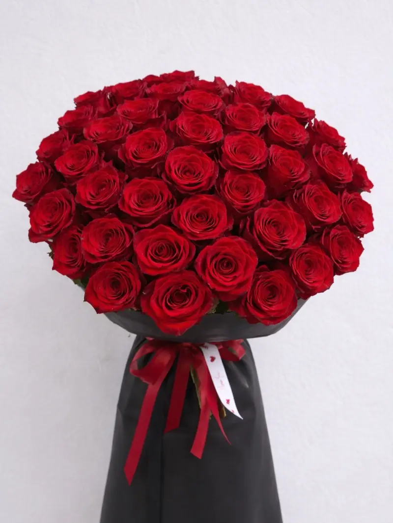 Розкішний букет із насичено-червоних троянд — класичний символ кохання, пристрасті та щирих почуттів. Кожна троянда ретельно відібрана, з оксамитовими пелюстками та глибоким кольором, що підкреслює елегантність композиції. Букет оформлений у стильний білий пакувальний папір і доповнений стрічкою, що робить його ідеальним подарунком для особливих моментів: зізнання в коханні, річниці, дня народження або просто щоб сказати «ти для мене важлива».