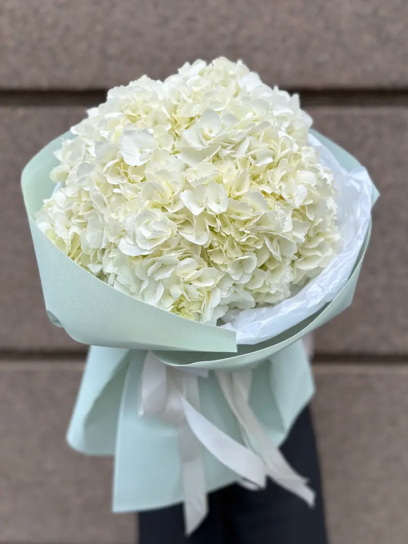Повітряний пастельний мікс із великих «шапок» гортензії: білої
