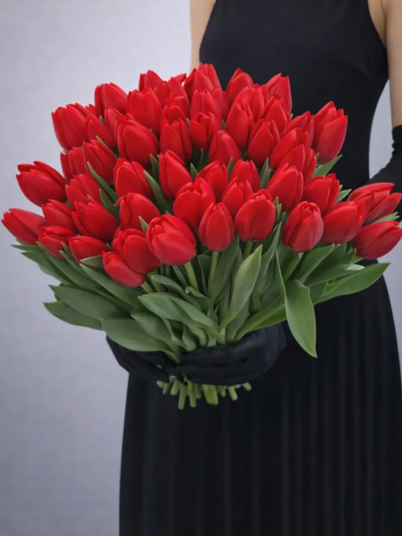 Такий букет виглядає сучасно й елегантно, ідеально підійде для романтичного подарунка, освідчення, дня народження або як яскравий акцент до особливої події. Червоні тюльпани завжди говорять голосніше за слова.