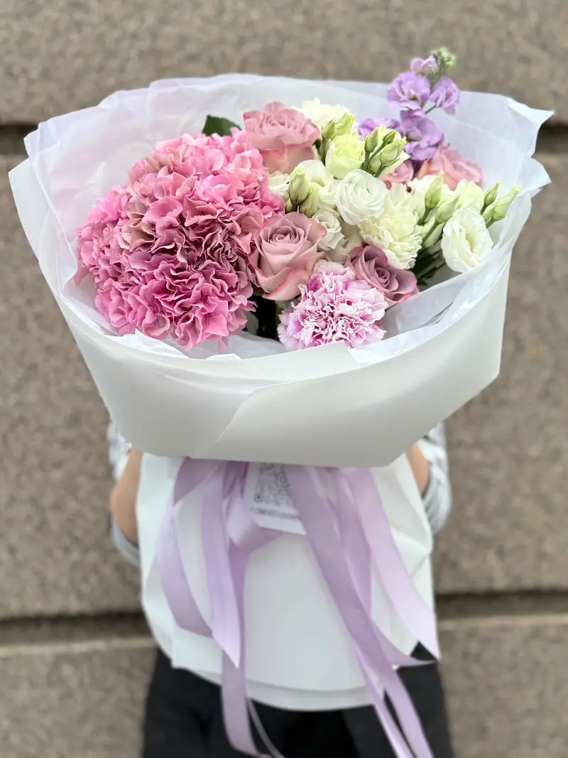 Цей букет поєднує в собі елегантність і ніжність, створюючи справжнє квіткове диво. Кожна квітка в композиції ретельно підібрана, щоб передати всю красу і витонченість природних форм.
