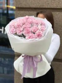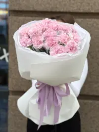 Вишуканий букет із 17 лілових гвоздик — символ ніжності, захоплення та витонченості. Насичений, але водночас делікатний відтінок квітів створює атмосферу гармонії й елегантності.