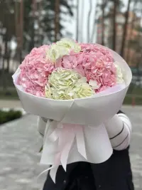 Букет гортензій — це поєднання ніжності, об’єму та витонченої краси. Пишні суцвіття гортензій створюють відчуття легкості й розкоші водночас, наповнюючи композицію м’якими відтінками та природною гармонією. Ці квіти символізують щирість, вдячність і теплі почуття.