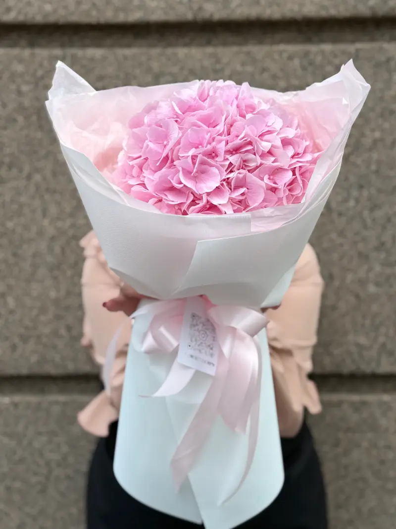 Лаконічний та ефектний букет із однієї великої гортензії. Оберіть колір — блакитний або рожевий — і ми акуратно оформимо квітку у відповідне пастельне пакування з легкою органзою та стрічками. Композиція виглядає повітряно, ідеальна для подяки, ніжного привітання чи фотосесій. Доставляємо по Ірпеню, Бучі, Ворзелю.