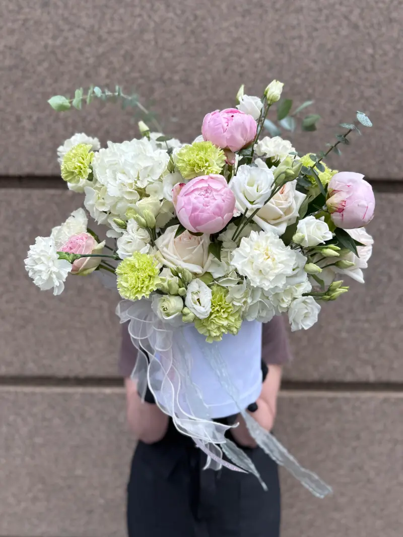 Ця композиція поєднує в собі найкраще з квіткового світу. Завдяки різноманіттю відтінків — від ніжно-рожевого та кремового до насичено-бурякового й лимонного — букет виглядає живим, об’ємним та святковим. Кожна квітка у цій композиції доповнює інші, створюючи неповторну палітру емоцій.