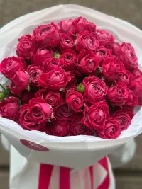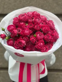 Виразний букет із піоновидних спрей‑троянд насиченого рожевого відтінку. Десятки щільних бутонів створюють об’єм і «вау‑ефект» на фото та наживо. Акуратне біле матове пакування і стрічка підкреслюють контраст і роблять композицію преміальною. Ідеально для дня народження, пропозиції, річниці або коли потрібно вразити з першого погляду. Швидка доставка по Ірпеню, Бучі та Ворзелю.