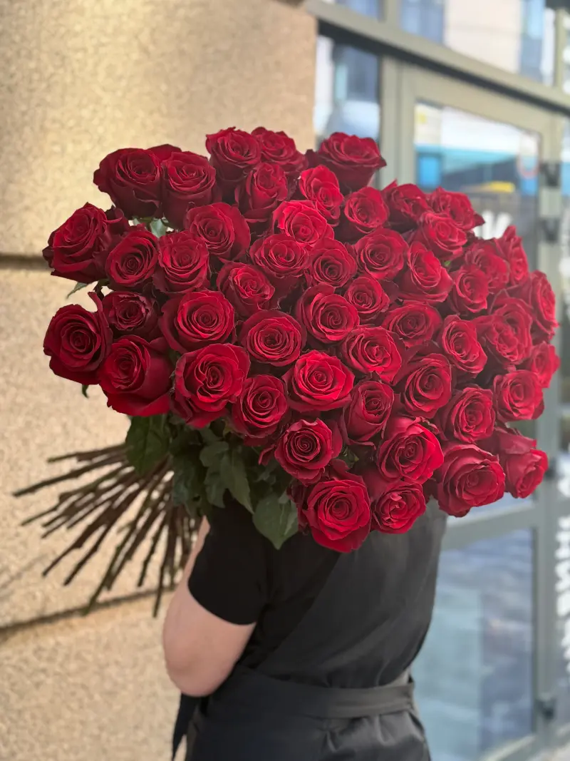 51 троянда — це вже суперрозкішний букет, який виглядає як справжня квіткова інсталяція.