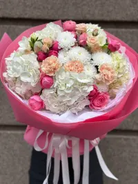 Ніжний та гармонійний букет у пастельно-рожевих і білих відтінках. У композиції поєднані: