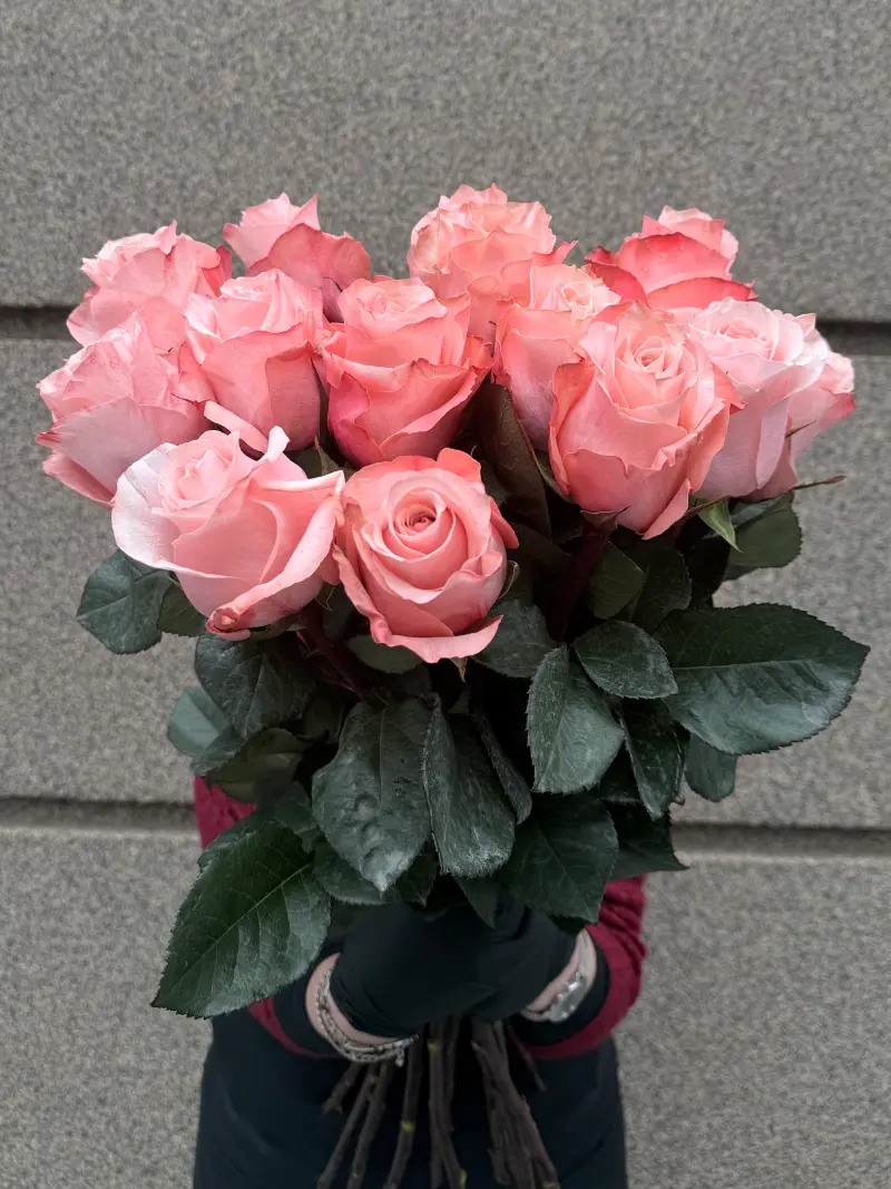 Вишуканий букет ніжно-рожевих троянд — це уособлення тепла, ніжності та справжньої жіночності.