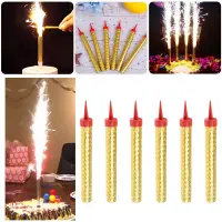 Компактні холодні фонтани висотою 10 см створюють яскравий іскорний ефект із мінімумом диму — ідеально для тортів, капкейків та подачі десертів у приміщенні. Золотий корпус виглядає святково й охайно в кадрі. У наборі — 6 штук.