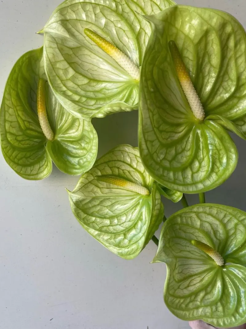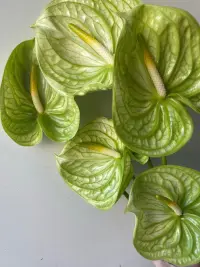 Антуріум – екзотична квітка з глянцевими листками та яскравим суцвіттям у формі серця. Символізує кохання, пристрасть і достаток, тому часто використовується у подарункових композиціях та стильних флористичних рішеннях. Завдяки своїй стійкості, антуріум зберігає свіжість у зрізі до декількох тижнів.
