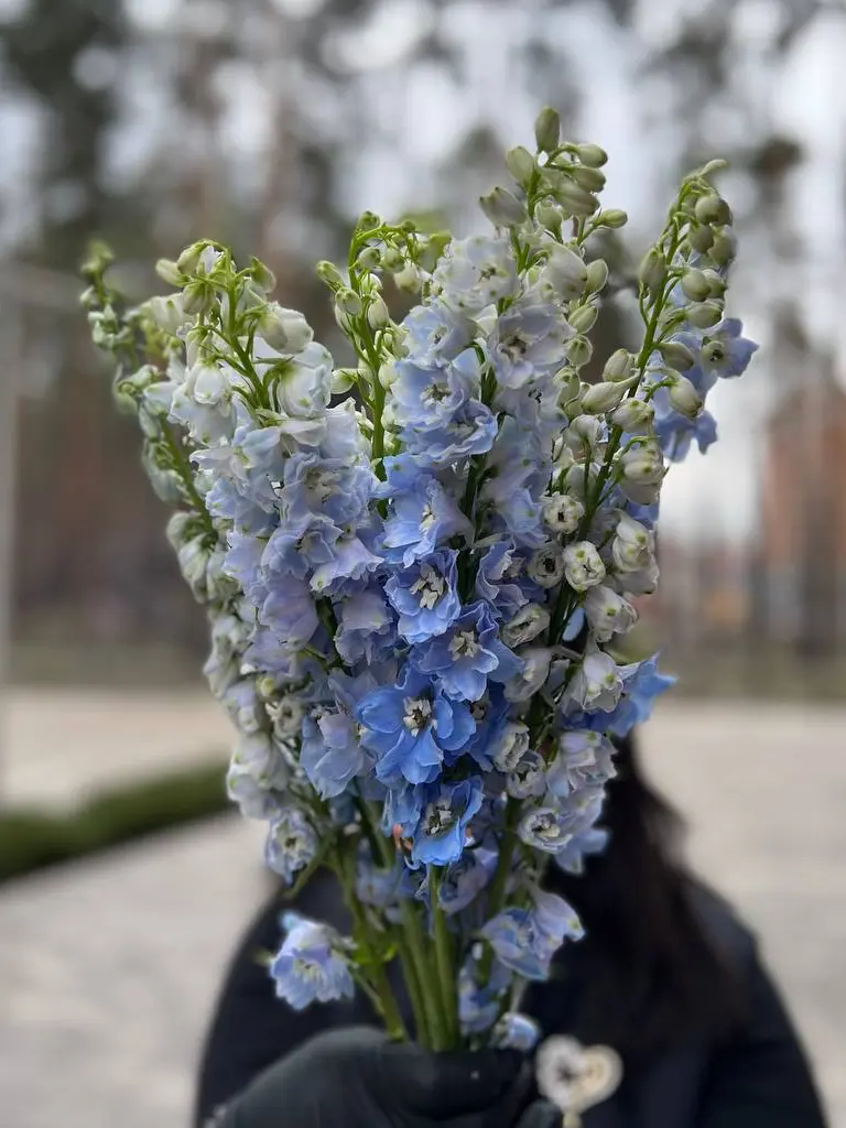 Гілки дельфініуму ідеально підходять як для самостійного букета, так і для доповнення квіткових композицій, додаючи їм висоти, об’єму та благородства.