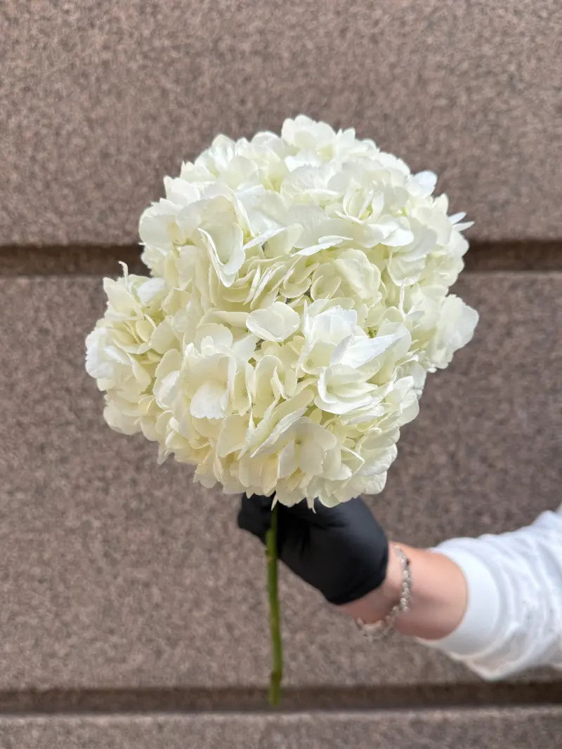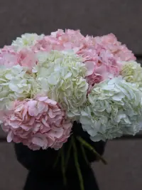 Розкішний букет з великих шапок гортензії ніжно-рожевого та білого відтінків. Символ ніжності, легкості та вишуканості, який створює атмосферу свята та гармонії. Ідеальний вибір для весіль, романтичних побачень чи як вишуканий подарунок для особливих моментів.