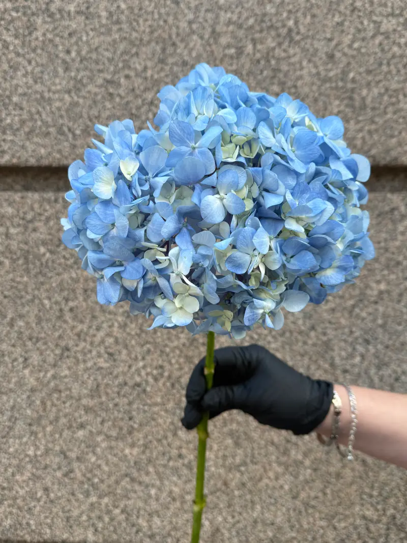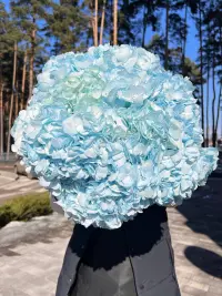Блакитна гортензія – символ щирості, гармонії та глибоких почуттів. Її ніжні об’ємні суцвіття зачаровують відтінками небесно-блакитного кольору, даруючи відчуття легкості й спокою.