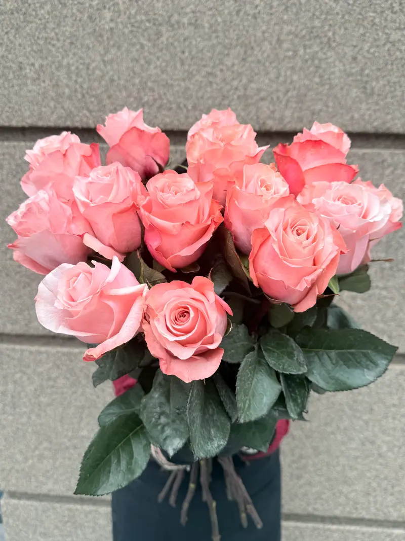 Цей неймовірний букет складається з ніжних відтінків персикового. Поєднання теплих тонів створює атмосферу радості, кохання та свята.