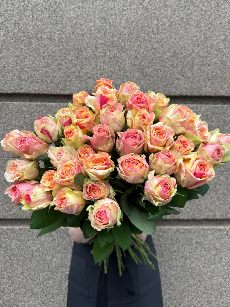 Fiesta — справжнє «свято» кольору: пелюстки чергують насичені рожеві та теплі жовто‑персикові смуги, створюючи ефект конфеті. Щільний бутон тримає форму, а в зрізі довго зберігає яскравість. Продаємо поштучно — зберемо будь‑яку кількість у стрічку або преміум‑пакування. Ідеальний вибір, коли потрібен підбадьорливий, нестандартний букет. Швидка доставка по Ірпеню, Бучі, Ворзелю.