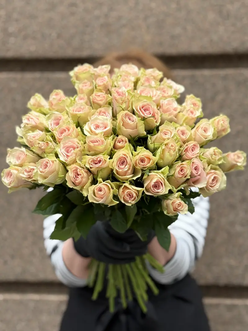 Pink Athena — елегантна троянда м’якого рожевого відтінку з світлими, майже айворі краями пелюсток. Щільний бутон тримає форму, виглядає делікатно та святково. Продаємо поштучно: зберемо будь‑яку кількість, зав’яжемо стрічкою або оформимо у пакування. Швидка доставка по Ірпеню, Бучі, Ворзелю.