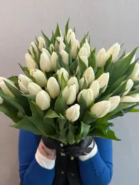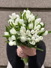 Букет білих тюльпанів виглядає стильно, лаконічно й завжди доречно. Він несе спокій, гармонію та теплі емоції.