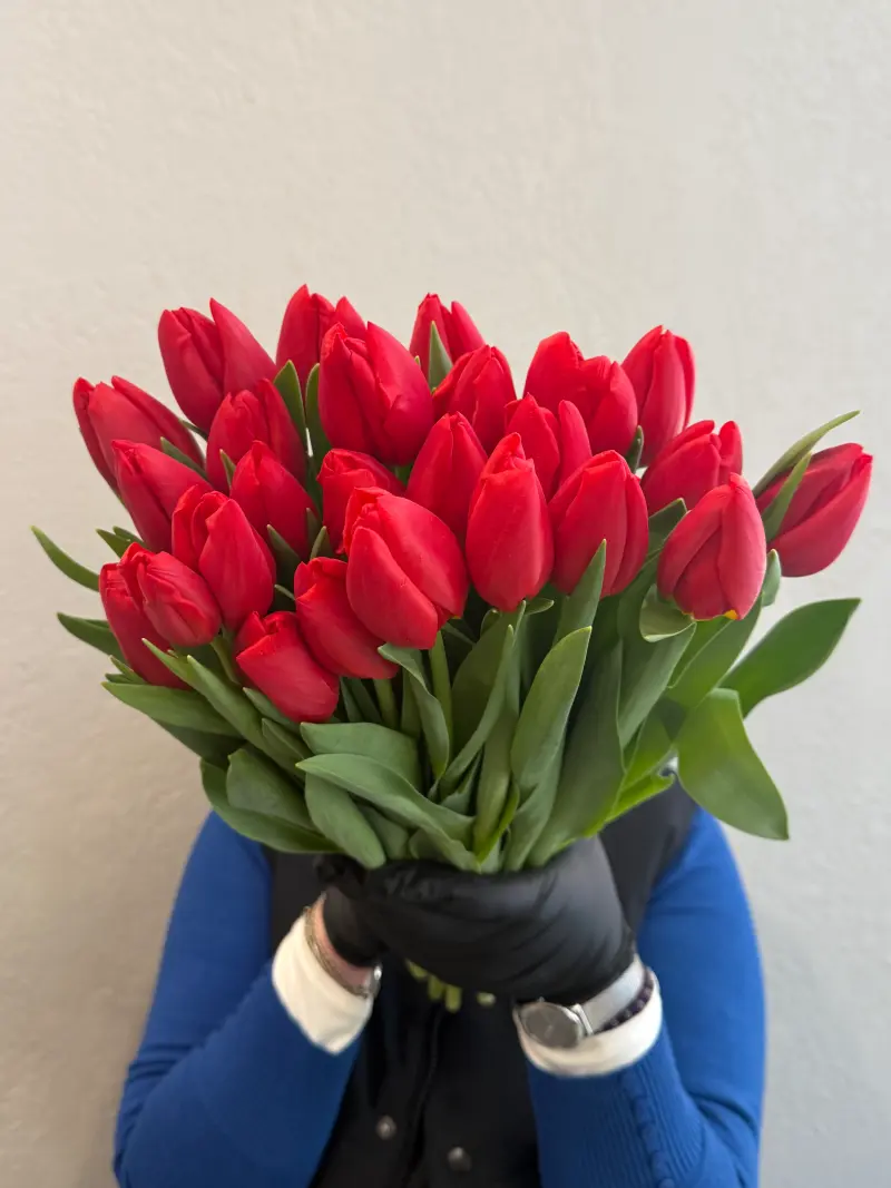 Червоні тюльпани — це сміливе зізнання без слів. Такий букет ідеально підходить для романтичних моментів, важливих дат, освідчення в почуттях або коли хочеться зробити яскравий, незабутній жест.