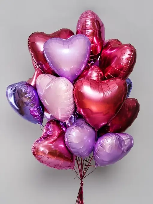Яскравий та романтичний набір із 15 фольгованих кульок у формі сердець у трьох відтінках – ніжно-рожевому, стильному фіолетовому та насиченому малиновому. Така композиція створює святкову атмосферу та стане ідеальною прикрасою для: