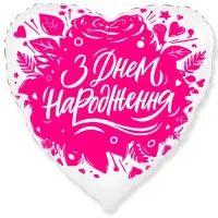 Яскрава фольгована куля насиченого відтінку фуксії з ніжним квітковим дизайном і написом «З Днем народження». Вона підкреслить святкову атмосферу та стане стильним доповненням до подарунка чи букета.