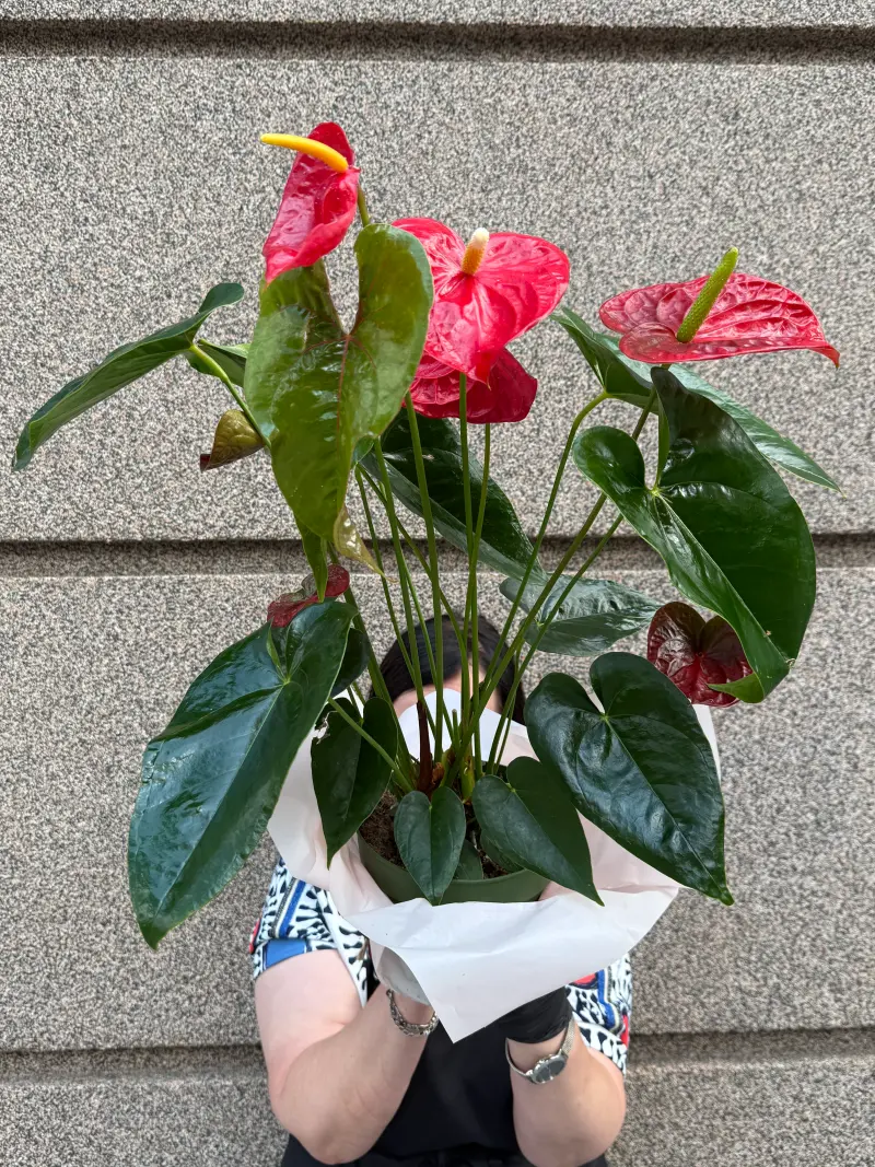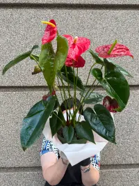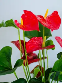 Антуріум чудова домашня екзотична рослина. Головна його перевага - насичена кольорова гамма бутонів, від яскраво-червоних до сніжно-білих, включаючи лілові, бордові, рожеві тони. Антуріуми це велика рослина з великими серцеподібними темно-зеленим листям які виглядають дуже ефектно і оригінально.