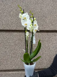 Ця орхідея стане ідеальною прикрасою інтер’єру чи вишуканим подарунком для особливих моментів: весілля, ювілею або просто знаку уваги. Білий колір квітів гармонійно поєднується з будь-яким стилем — від класики до мінімалізму.