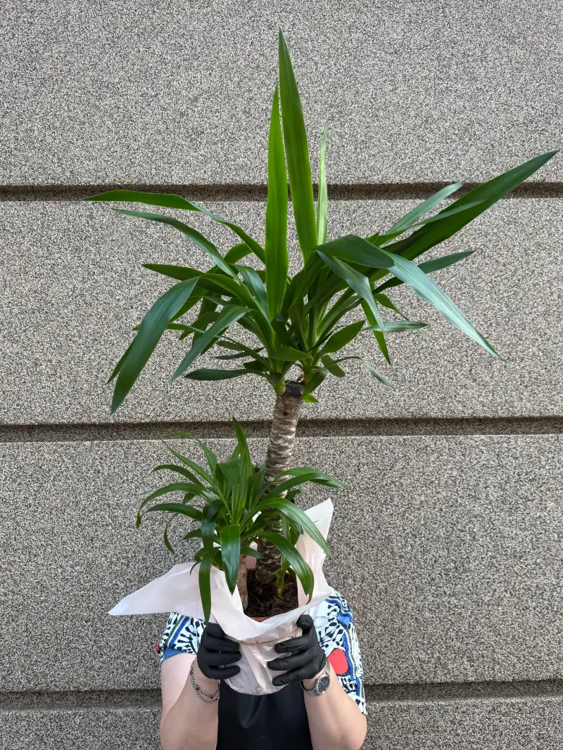 Юка (Yucca) — невибаглива та ефектна кімнатна рослина з прямим стовбуром і вузьким довгим листям, яке створює тропічну атмосферу. Ідеально підходить для інтер’єру в стилі мінімалізм, лофт або еко.